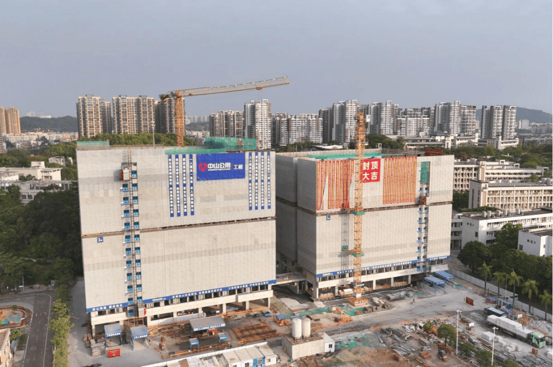12月12日,中山职业技术学院西区新建宿舍楼及附属工程项目主体结构顺利封顶。