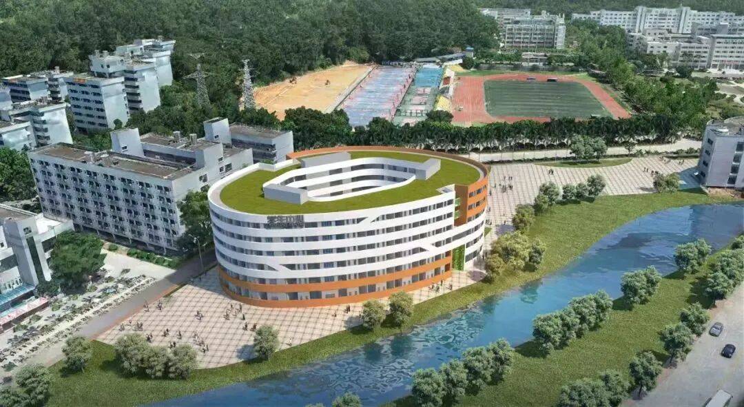 惠州学院学生中心(宿舍)项目整体呈椭圆形,中间为镂空的空间设计,犹如岭南的客家围屋,规划批复总建筑面积11978.31㎡,共6层,已于2025年3月顺利封顶,计划8月竣工,将新增加床位1200个左右。