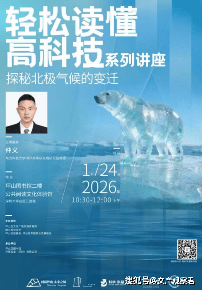 科教:“轻松读懂高科技”系列讲座第八场1月24日启幕。南方科技大学海洋高等研究院研究副教授仲义将带来《探秘北极气候变迁》主题分享,用科学家的探索视角,带市民解锁北极气候的万千奥秘。