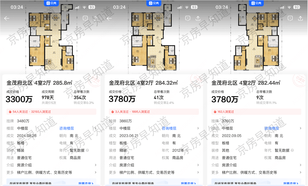 而在最近一轮周期中,亦庄金茂府和宋家庄的北京金茂府已经破发,其他板块的金茂府回调幅度也不小。