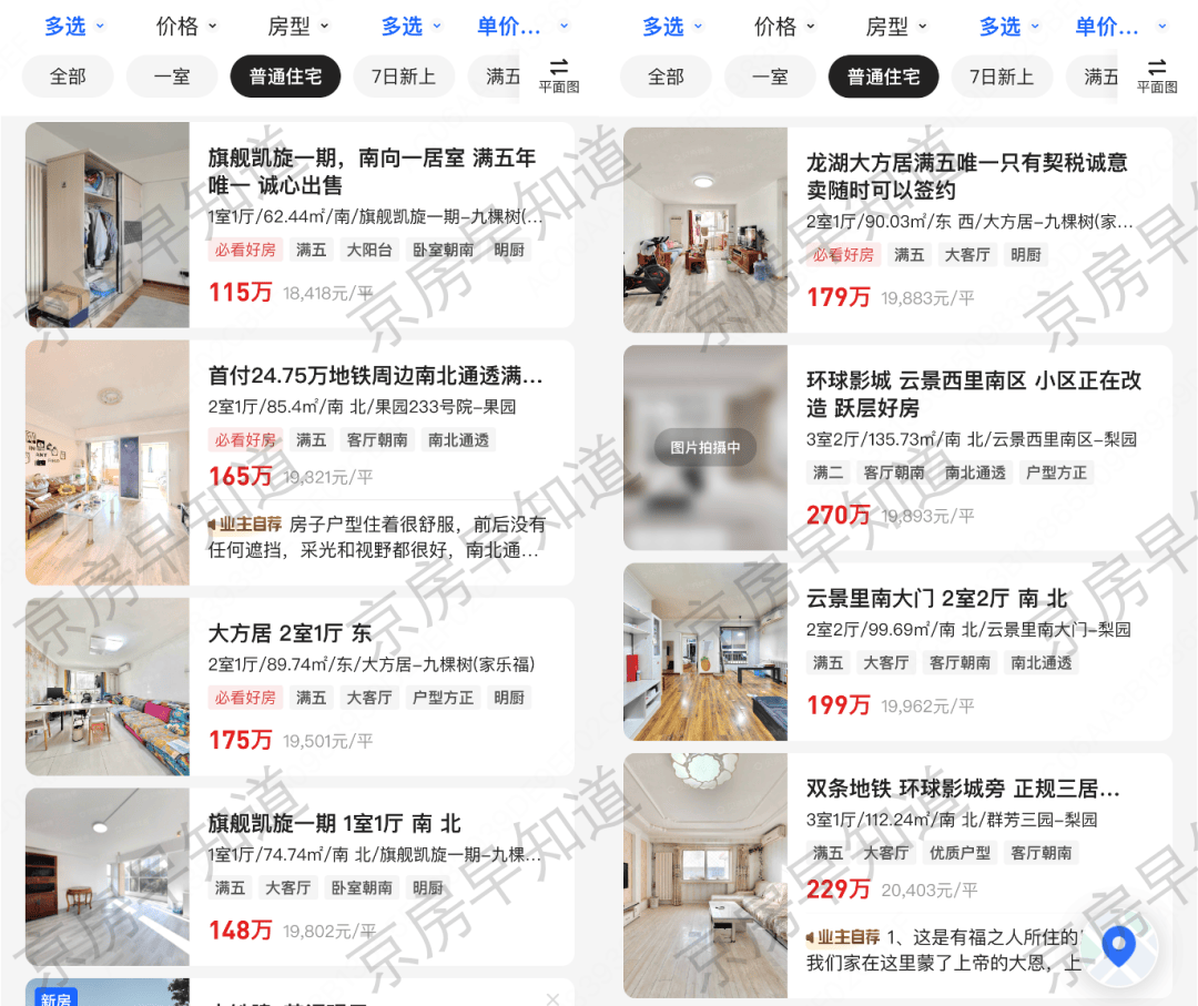 从相对热门的三个板块(梨园、果园和九棵树)来看,目前最低挂牌单价是1.8万/㎡,并且不少房子的挂牌单价不足2万/㎡。