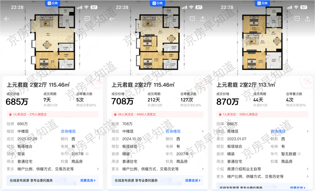 最近复盘了西城大量小区的价格轨迹,发现波动差别明显,不少小区的幅度不小,品质好的次新小区会相对更稳。
