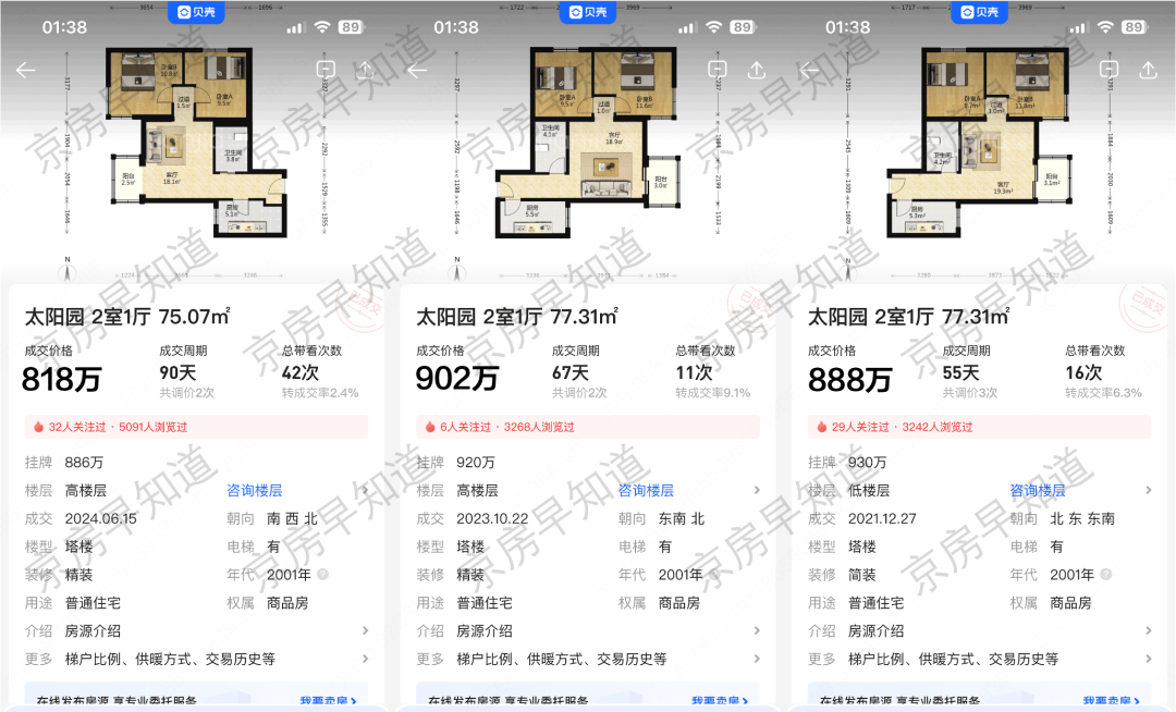 :在2026年1月成交了一套89㎡的2居室,成交价1050万。上一套同户型成交价是950万,