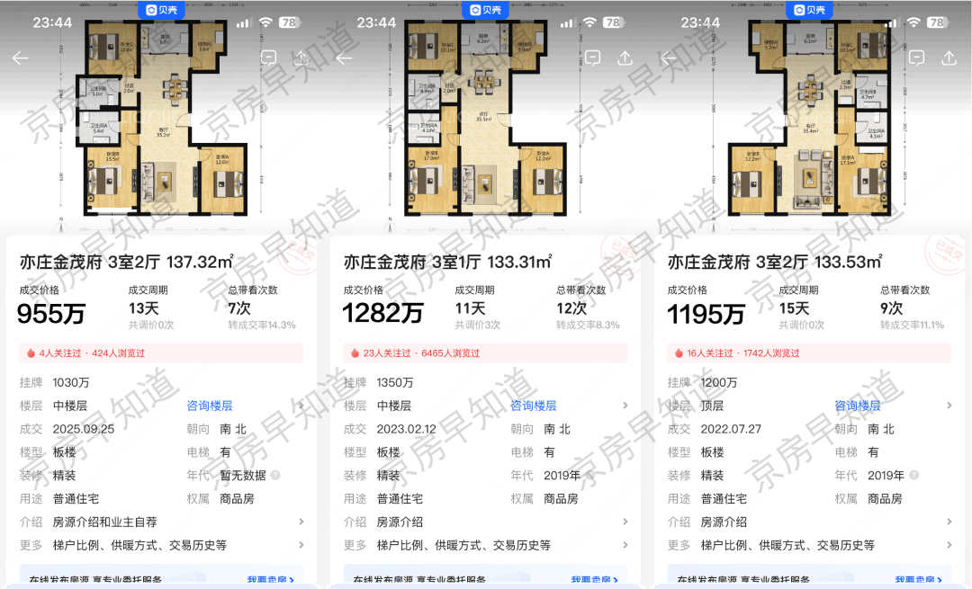 :在2026年2月成交了一套133㎡的3居室,成交价908万。同户型在2025年12月成交价是770万,