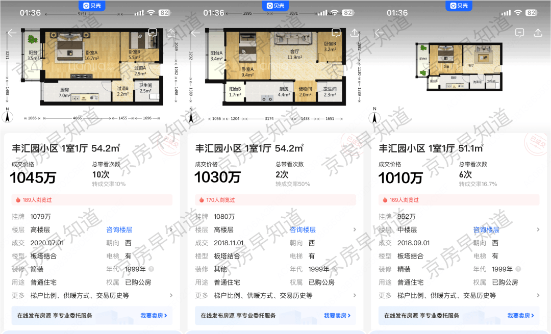 丰汇园小区在2026年2月成交了一套54㎡的1居室,成交价710万。同户型在2017年3月成交价是1338万,降价了628万,幅度47%。