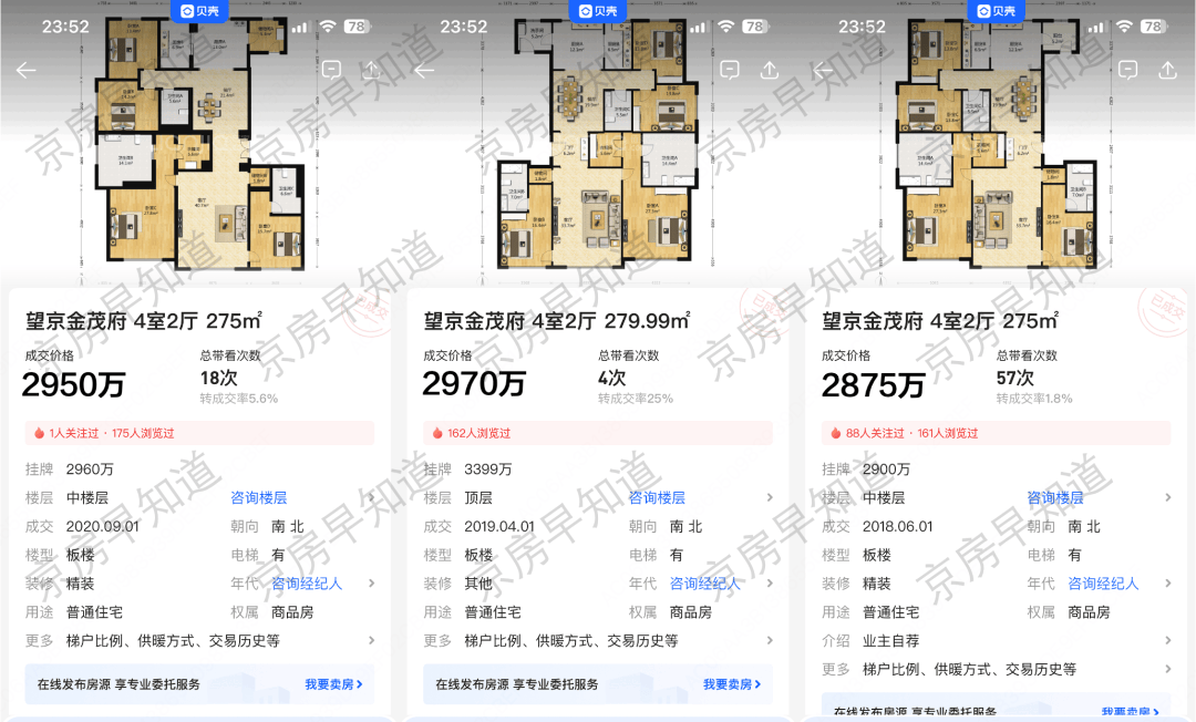 望京金茂府在2026年1月成交了一套275㎡的4居室,成交价2388万,成交单价是8.68万/㎡。