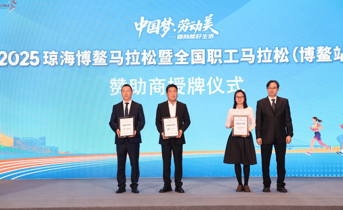 赞助商授牌仪式环节,海南省总工会党组成员、副主席陈波为分别来自中国农业银行海南省分行、兴业银行北京分行、五粮液酒类销售有限公司的赞助商代表授牌,感谢其对赛事的大力支持。据悉,合作单位将为赛事提供多方面支持,同时也将通过赛事平台进一步提升品牌影响力。