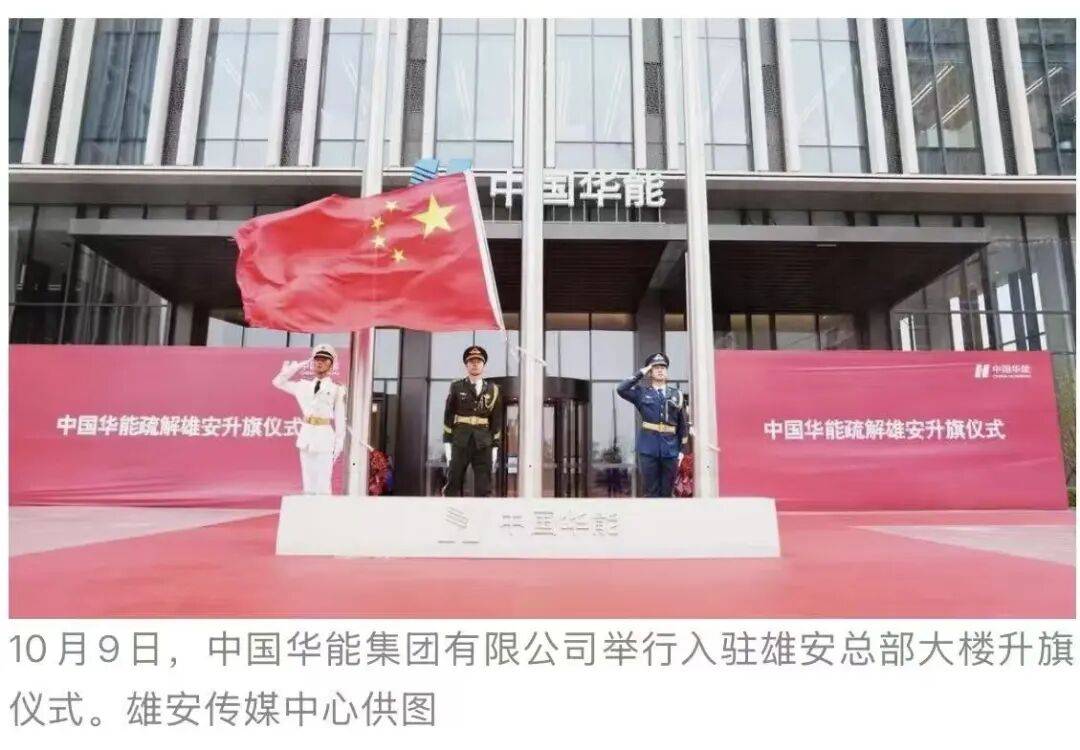 10月9日上午,中国华能集团有限公司、中国中化控股有限责任公司在雄安新区举行升旗仪式。在庄严的国歌声中,五星红旗在中国华能总部大楼和中国中化总部大楼前缓缓升起,这标志着作为雄安新区首批疏解央企的中国华能和中国中化正式迁驻雄安。