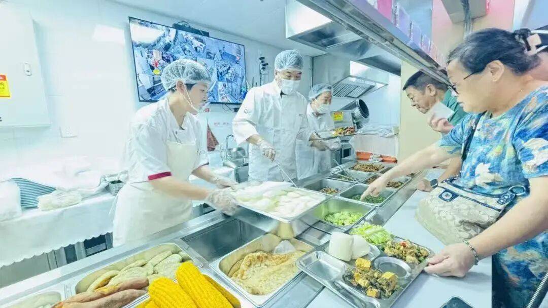 食堂专设“敬老套餐”:一荤一素18元,敬老价16元;一荤两素22元,敬老价20元;两荤一素25元,敬老价22元;两荤两素30元,敬老价26元;粥汤免费,暖心又暖胃。